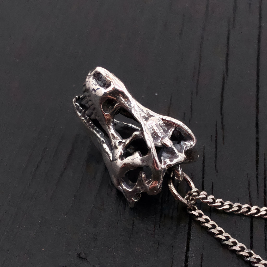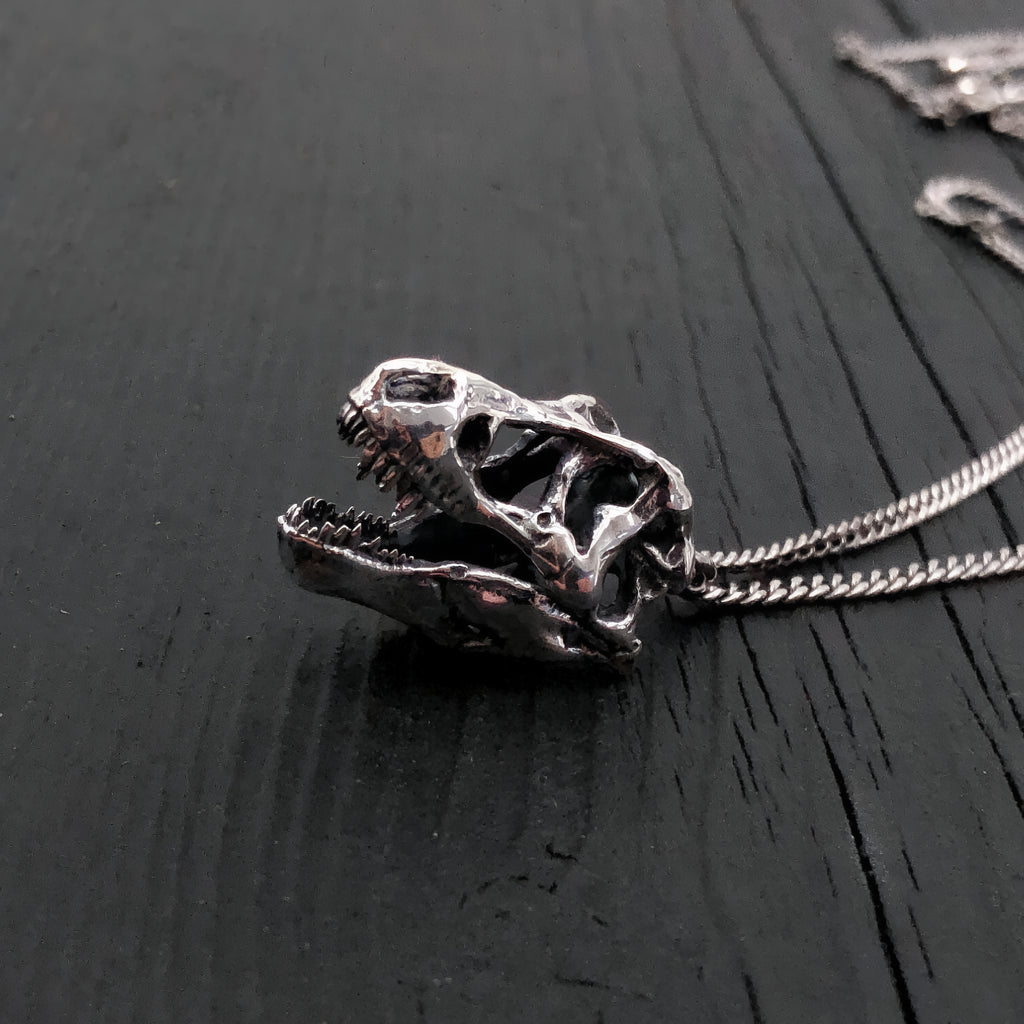T-Rex Skull Necklace - Sterling Silver 3D Dinosaur Pendant by Moon Raven Designs