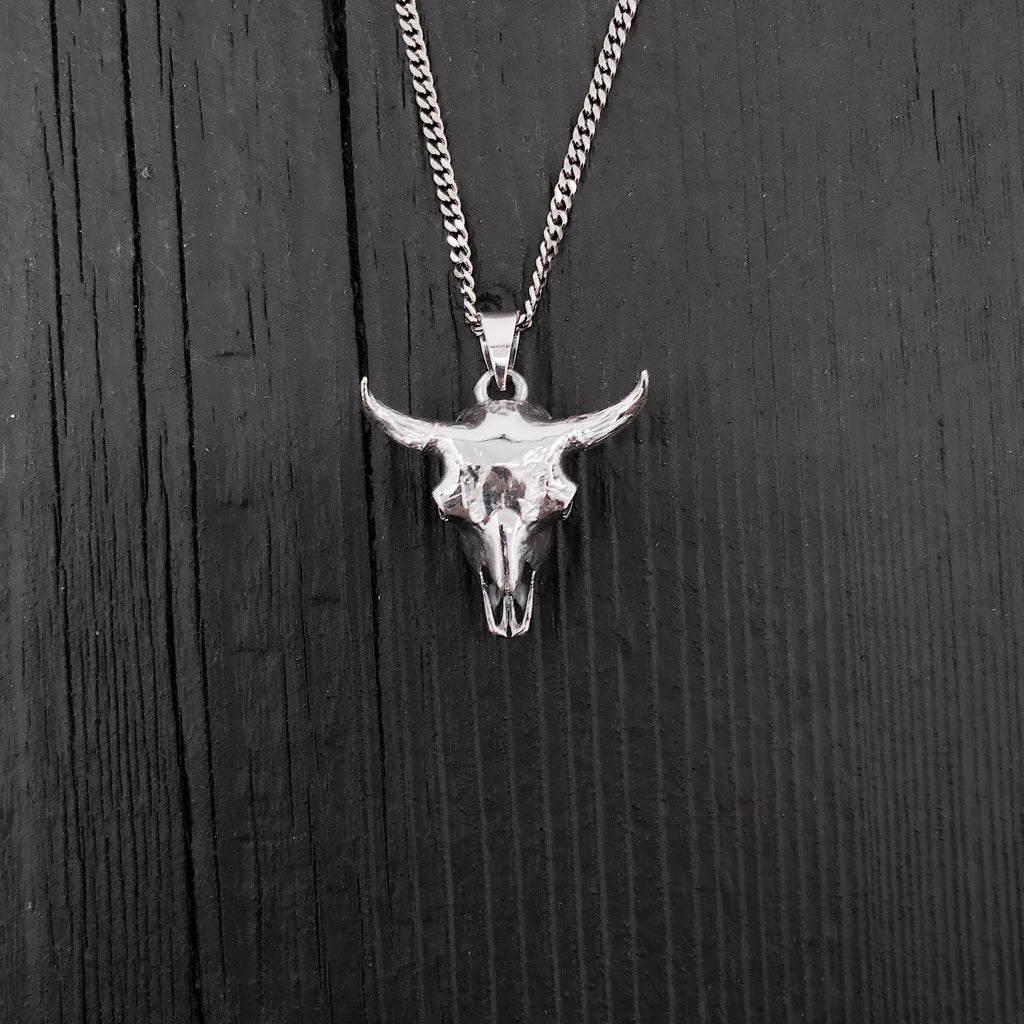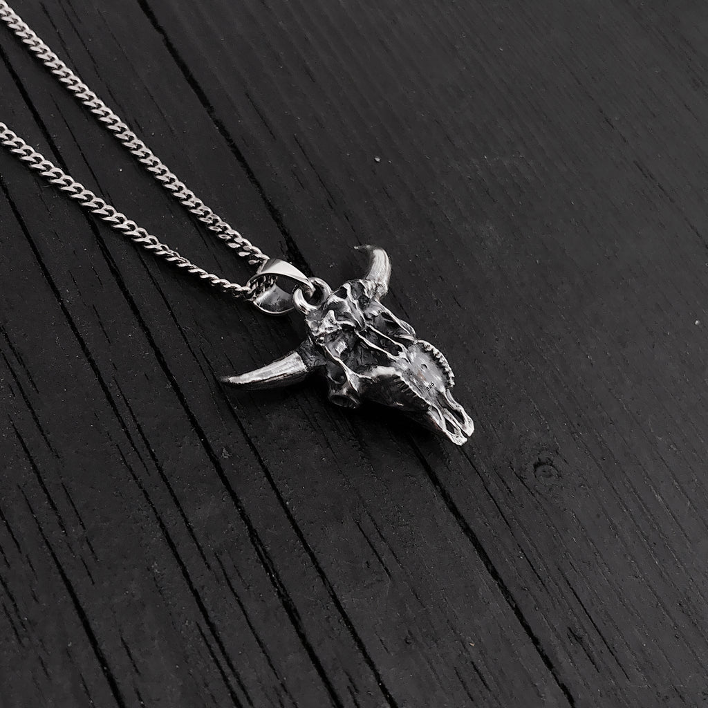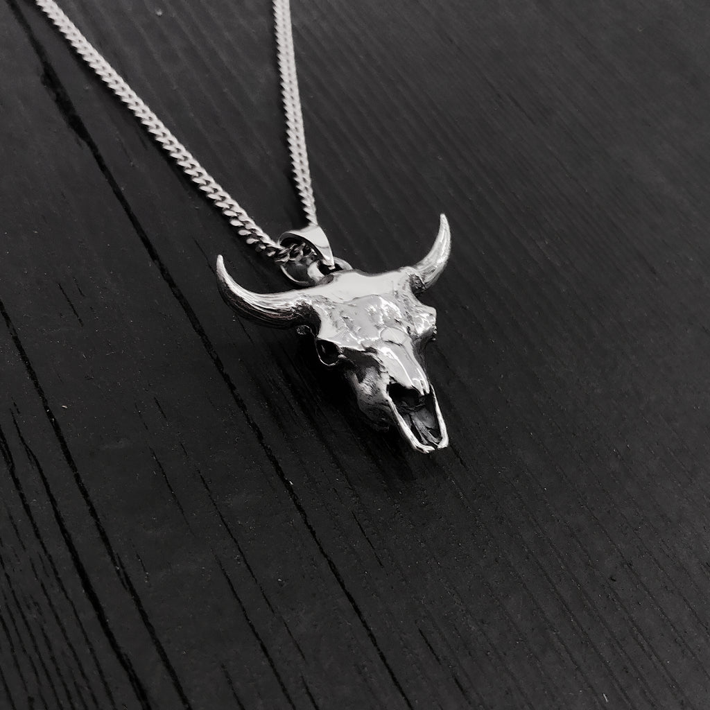 Silver Bison Necklace | Handcrafted Sterling Silver Jewelry With Skull Pendant