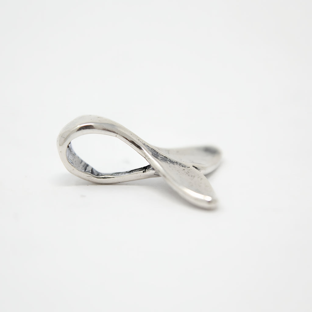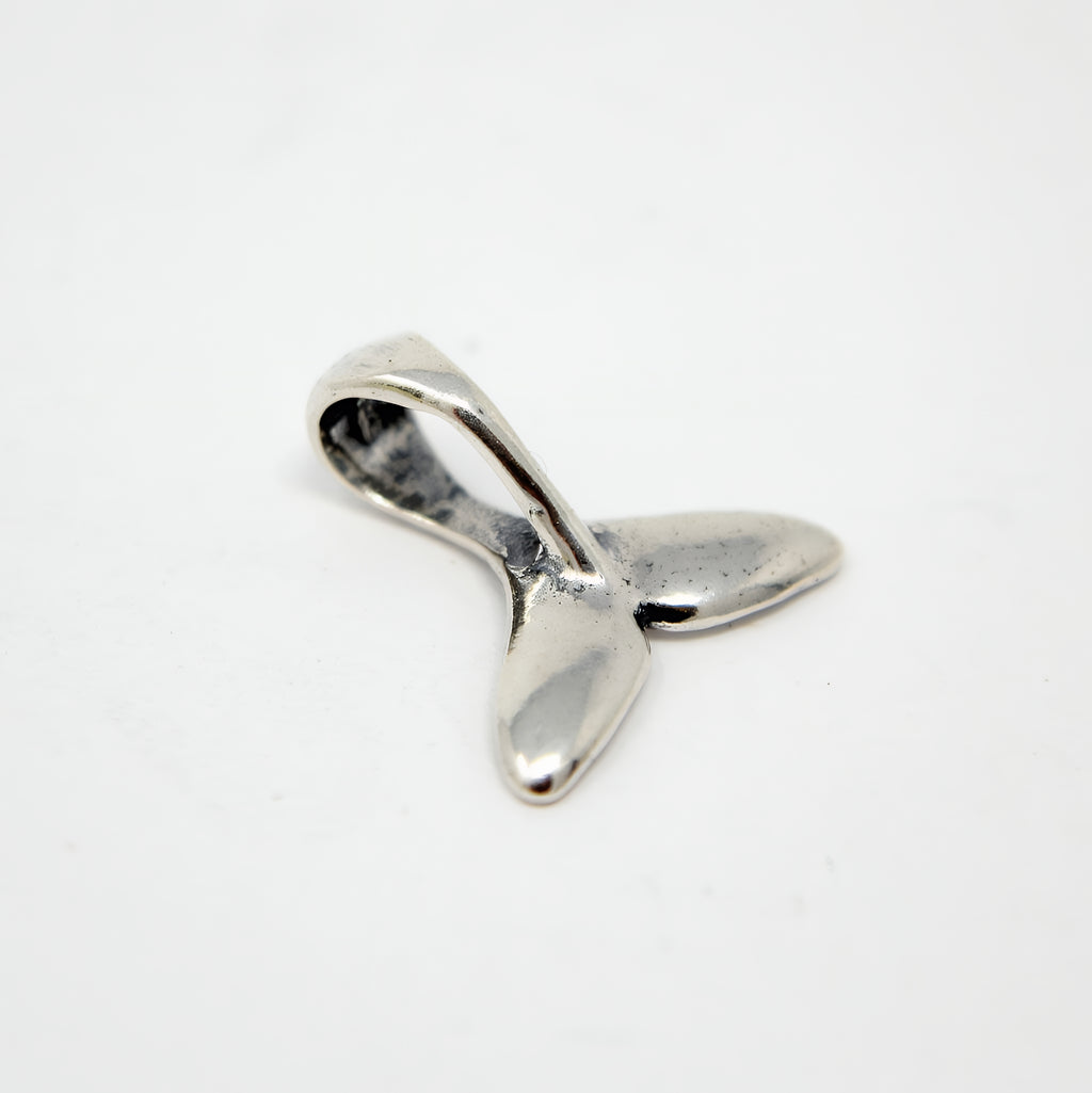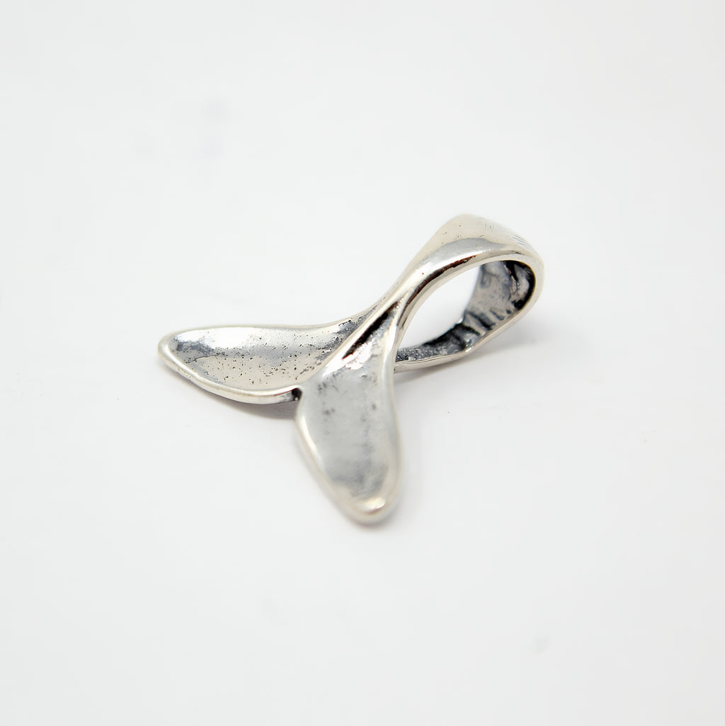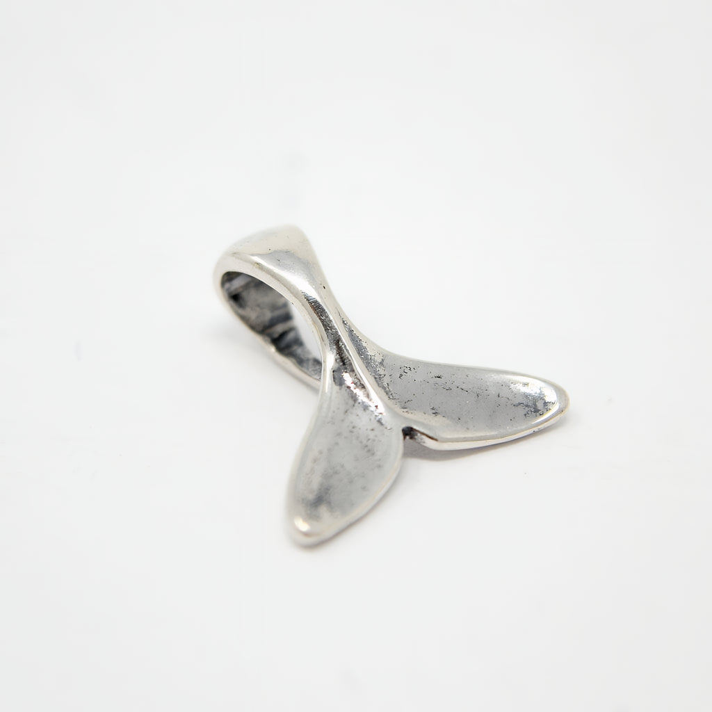 The whale tail charm is a beautifully crafted solid .925 sterling silver European charm bead designed to capture the grace of a humpback whale fluke. Measuring 5/8" (16mm) across, this three-dimensional silver animal charm perfectly replicates the anatomical shape of a real whale tail on all sides, making it an exquisite addition to your whale tail jewelry collection. This sterling silver charm fits Pandora, Chamilia, and most other compatible charm bead brands, ensuring versatile wear and easy integration with your existing bracelets or necklaces.